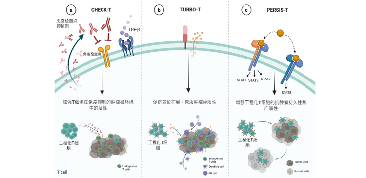 先進細胞裝甲平臺,通過裝備過繼性細胞療法(ACT)使其突破腫瘤微環(huán)境(TME)屏障及異質(zhì)性,提升實體瘤治療的安全性、浸潤性和持久性。